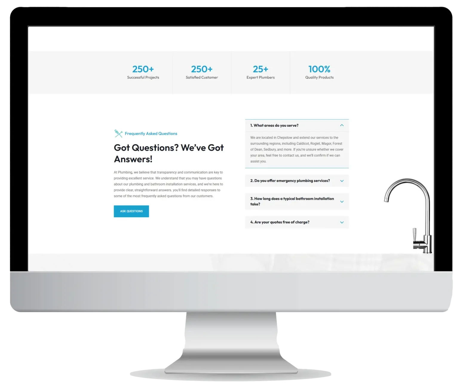The About Us section highlights the experience, dedication, and professionalism that set this plumbing service apart. With a strong commitment to quality and customer satisfaction, this section gives visitors insight into the company’s mission, values, and expertise.